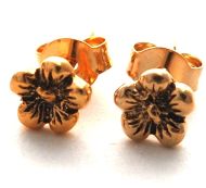 14k gold over sterling silver Alaska Forget Me Not earrings are mounted on our artistic card. Natural history of Alaska's state flower printed on the back of our tent card. Flower diameter 1/4 inch. Semaki & Bird exclusive.
