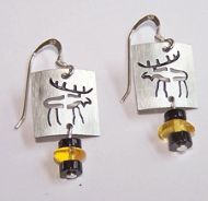 Sterling silver moose with semi-precious stones and beads. Mounted on Alaskan petroglyph card. Actual size 1/2 inch square. Crafted in U.S.A. Semaki & Bird exclusive.