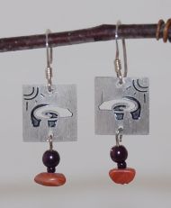 Sterling Silver bear with semi-precious stones and beads. On Alaskan petroglyph card. Crafted in U.S.A. Semaki & Bird exclusive. Actual size 1/2 inch square.