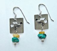 Alaskan petroglyph birds are etched into solid sterling silver earrings. Semi-precious stones and beads accent the design. Crafted in U.S.A.