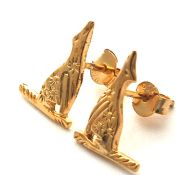 14k gold over sterling silver wolf post earrings are mounted on our "Alaska's Wolf" foldover card.