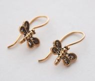 14k gold vermeil petite dragonfly earrings are mounted on our habitat cards.