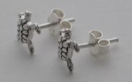 Sterling silver loggerhead sea turtle post earrings are mounted on our beach cards.