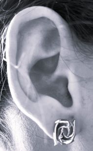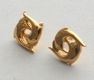 14k gold vermeil double fish earrings. Actual width 1/4"