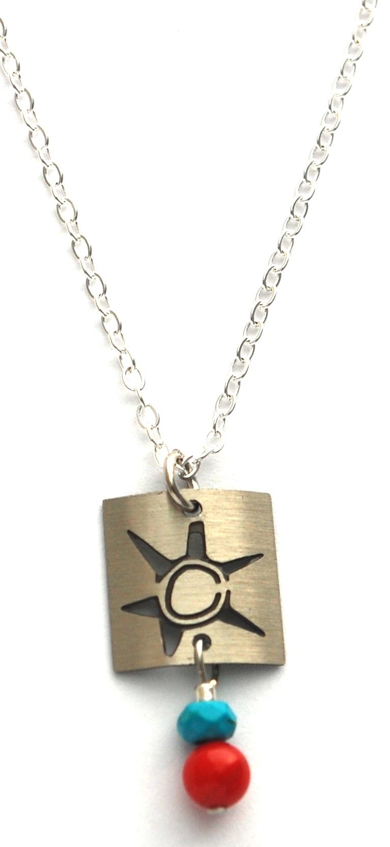 Our sterling silver pendant (sterling silver element 1/2") hangs from a 16" sterling chain. Each necklace unique with semi-precious stones and accent beads. Crafted in U.S.A.