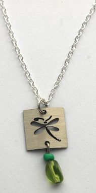 Dragonfly Petroglyph Necklace  Our sterling silver dragonfly pendant (sterling silver element 1/2") is accented with semi-precious stones. 16" sterling silver bead chain. Crafted in U.S.A. Each necklace unique.