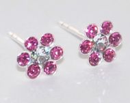 Swarovski crystal flower earrings mounted on Holly Berry cards. Card opens for gift message. Assorted color crystals, sterling silver