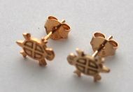 14k gold over sterling silver turtle post earrings are mounted on our southwest foldover card.