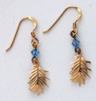 Our oak leaf earrings are 14k gold over sterling silver. Assorted crystal colors. Made in U.S.A. Semaki & Bird exclusive.
