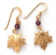 Our maple leaf earrings are 14k gold over sterling silver. Assorted crystal colors. Made in U.S.A. Semaki & Bird exclusive.