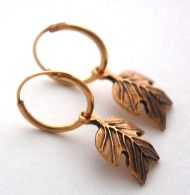 Gold tulip poplar leaves dangle from our 14k gold over sterling silver hoops. 14k gold plate poplar earrings are mounted on our exclusive poplar cards. Tulip poplars, 1/2 inch long. Hoop diameter 1/2 inch. Semaki & Bird exclusive. Made in U.S.A.