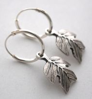 Silver tulip poplar leaves dangle from our sterling silver hoops. Sterling silver plate poplar earrings are mounted on our exclusive poplar cards. Tulip poplars, 1/2 inch long. Hoop diameter 1/2 inch. Semaki & Bird exclusive. Made in U.S.A.