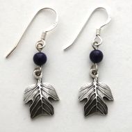 Sterling silver plate tulip poplar tree earrings ear wires are solid sterling silver. Assorted semi-precious stones accent the leaf design. Mounted on card with species and common name of the poplar. Dangle length 1 1/4 inch. Made in U.S.A. Semaki & Bird exclusive.