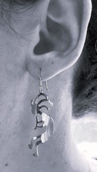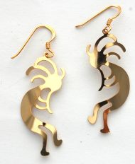 14k gold vermeil kokopelli earrings are crafted in U.S.A. Semaki & Bird exclusive. Kokopelli element is 1 1/2" long (total earring length from earwire 2").